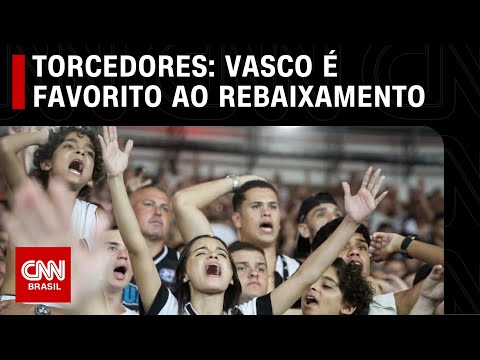 Os torcedores veem o Vasco como favorito ao reabaixamento no Campeonato Brasileiro deste ano, segundo "O Maior Raio-X do Torcedor", pesquisa da CNN/Itatiaia/Quaest. #CNNBrasil...